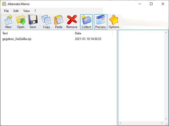 Alternate Memo是一款剪切板管理工具,用于管理剪切板内容的工具;它可以自动获取当前剪切板中的内容,并将其保存到软件中,当用户需要使用该复制内容时,可以直接在该窗口中打开使用而不用冲洗去查找内容并复制;很多朋友肯定遇到这样的情况,同一个内容需要多次使用的时候,用户不得不反复的查找该内容进行复制,而Alternate Memo则可以将剪切板中的内容收集起来,就算剪切板中更新了新的内容,收集的新内容也不会覆盖之前收集的内容,通过这种方式管理剪切板内容,用户在需要反复复制同一内容时就会变得更加高效。