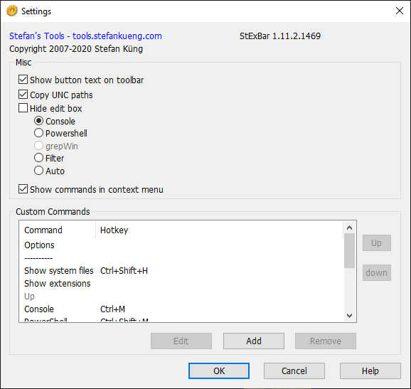 3、可以在StExBar的二级菜单中点击“option” 打开设置面板自定义配置右键功能,设置面板如下所示。