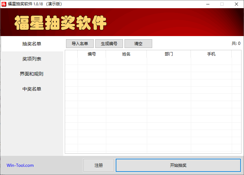 2、进入软件后首先是在抽奖名单界面中导入抽奖名单,支持TXT和Excel表导入名单。