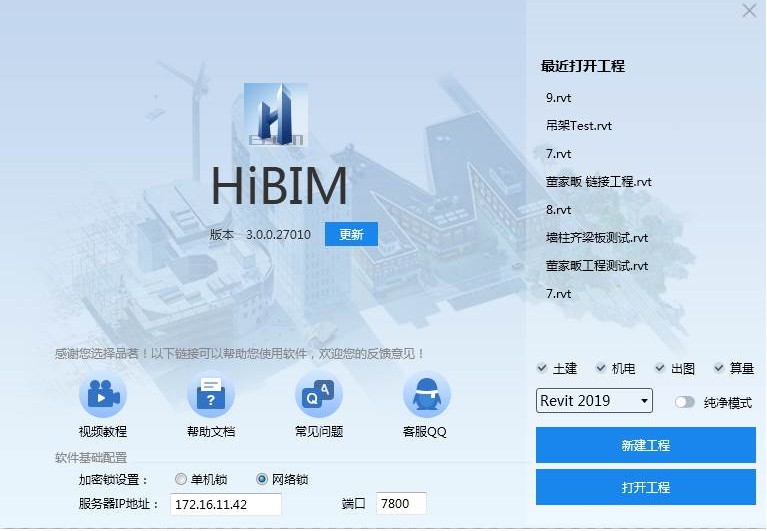 步骤1. 启动品茗HiBIM程序,弹出如下对话框: