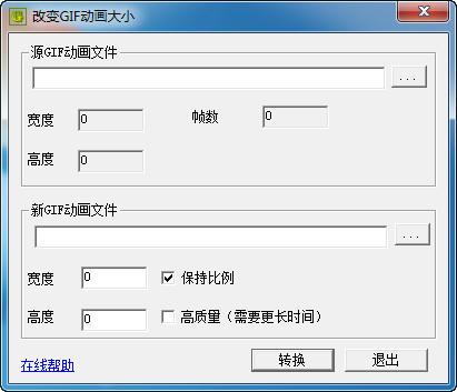 GIF Resizer可以快速将GIF图片调整到你需要的大小。在【源GIF动画文件】那里选择你要调整的gif图片,然后在【新GIF动画文件】那里选择保存路劲,输入你需要的宽度和高度,建议勾选保持比例,这样不会太失真,如果你需要更好的质量,那就勾选高质量。
