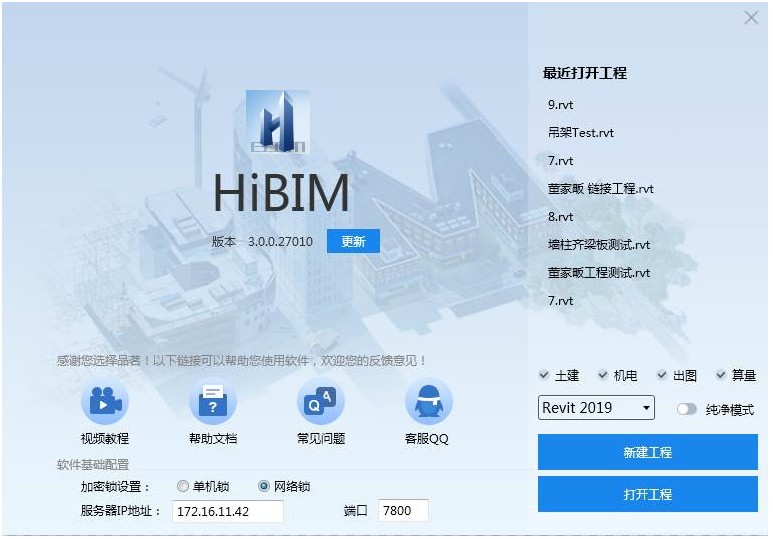 启动品茗HiBIM程序,弹出如下对话框: