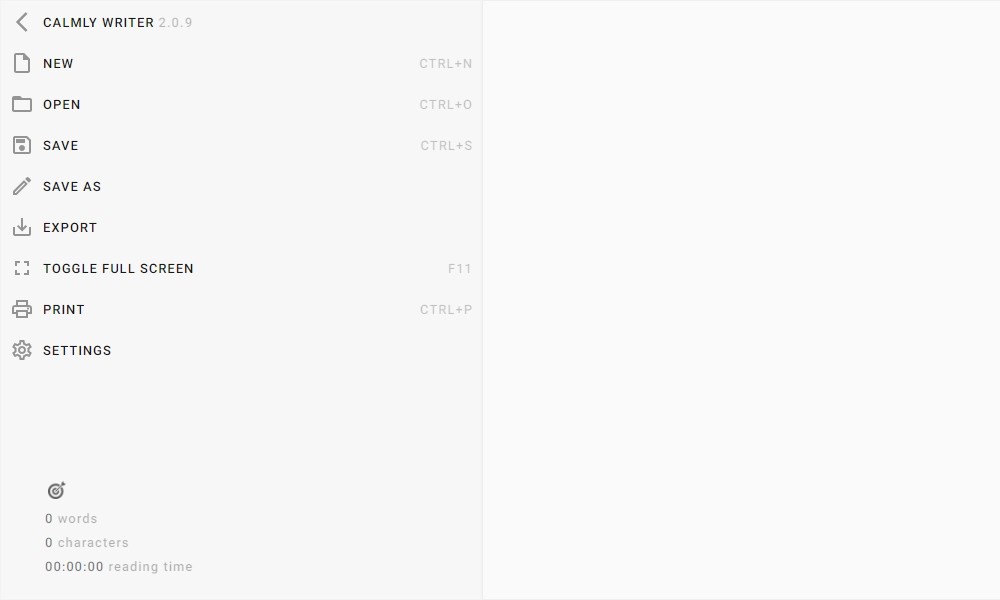 Calmly Writer是一款界面简洁直观、纯净洁白的终极无干扰的桌面写作软件,是一款专为写作用户而设计的专业写作应用程序,传统文字处理程序写作界面拥有几十个格式化文本选项,让用户写作注意力任意分散,而该软件没有过多的文本格式化操作选项,不会分散用户对写作的注意力,可让用户专心致志的进行写作;Calmly Writer致力于打造写作用户理想的文本编辑软件,让用户将想讲述的内容的写入编辑器,让用户拥有一个更简单、更便捷的文本编辑软件,方便用户进行写作、提高用户写作效率。