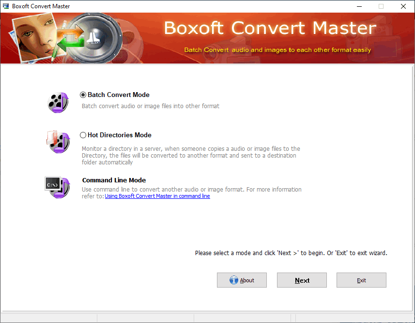 Boxoft Converter Master是一款功能强大的文件转换器,该软件包含了三个文件转换功能,分别是音频格式转换,图片格式转换和CD翻录;这款软件拥有简洁直观的用户界面,并且为用户提供了多种文件转换模式,用户可以使用一般的模式进行文件转换,这种模式对新手比较友好;而对于专业的用户则可以使用热目录和命令行来进行文件转换,这两种模式会比较高效;Boxoft Converter Master可以满足一般用户对音频,图片的转换需求,还提供了CD翻录功能,让用户可以在一个软件上完成多种文件的转换工作。