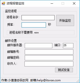 进程报警监控是一款非常简单且实用的进程报警监控软件,通过这款软件,可帮助用户快速监控相应的进程,使用该软件,可帮助您轻松监控指定的进程,实时进行监控,若该进程有变化,可立即发送邮件至预设的邮箱,进行提醒,具备简洁直观的操作界面,旨在为用户提供一套最简单的进程监控方案,只需输入进程名字,进行简单设置,通过几个简单的步骤一键即可进行监控,使用起来非常方便,即便您是新手,也能轻轻松松进行使用,这么好用的软件,赶快下载试试吧!