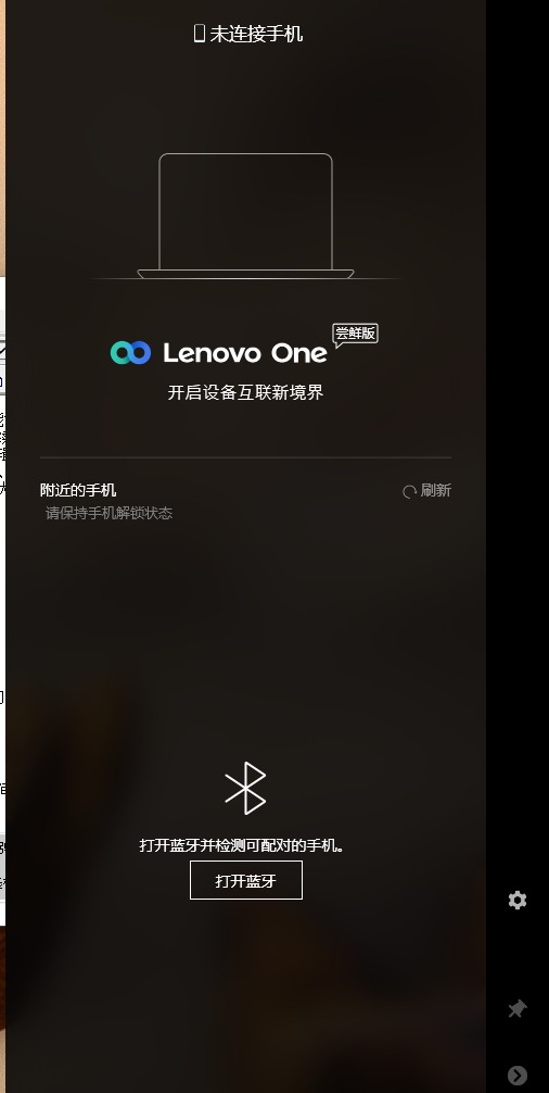 手机端打开Lenovo One设置页面的“允许被发现”开关,并且打开蓝牙和定位。