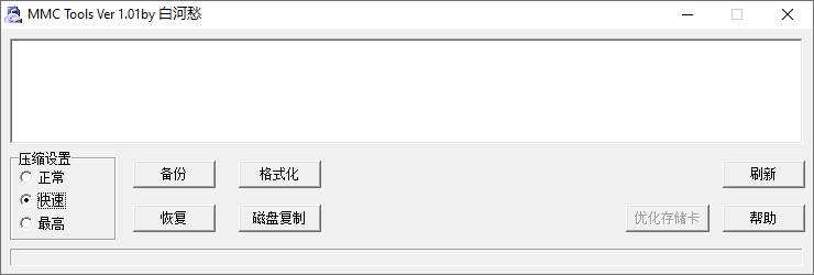 MMC TOOL是一款由网友制作的简单U盘工具,这款工具可以用来备份和恢复数据,格式化U盘和修复U盘等;该工具非常的轻小,因此不会对计算机造成任何的运行负担,是一个非常便捷的U盘工具;U盘作为一种常用的办公工具,需要使用到的地方比较多,但同时它也比较容易出现异常,比如无法在计算机上读取数据等;MMC TOOL可以帮助用户在U盘无法使用的情况下优化U盘或者是格式化U盘,让U盘可以重新工作;软件安全绿色,使用方式很简单,需要的朋友欢迎下载使用。
