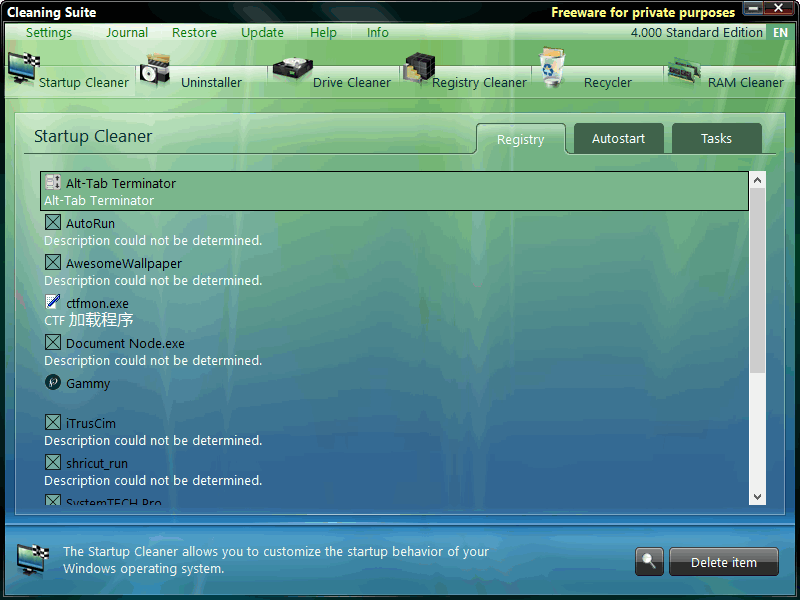 6、注册表清理程序扫描Windows注册表中的错误和空项目,并允许删除选定的项目。