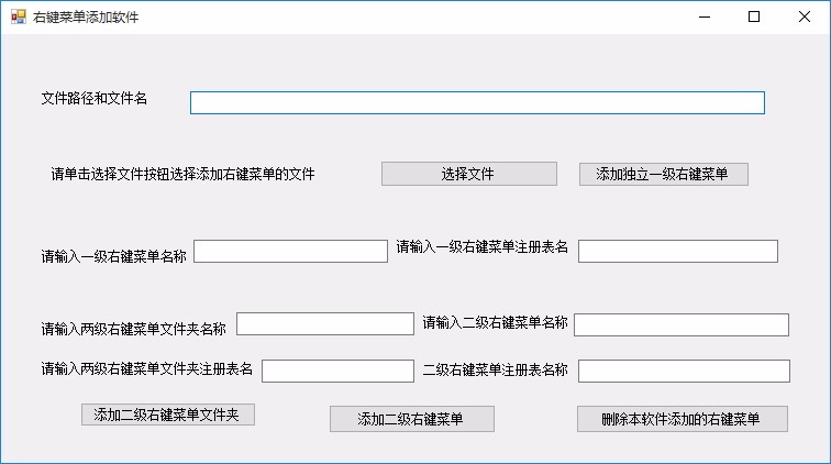 右键菜单添加软件是一款非常简单且实用的右键菜单管理软件,通过这款软件,可帮助用户快速将右键菜单进行管理,具备简洁直观的操作界面,旨在为用户提供最简单的操作,只需选择文件路径,添加文件,一键即可添加独立一级右键菜单,除此之外,还可添加二级右键菜单文件夹或二级右键菜单,可根据实际需要灵活进行选择,使用起来非常方便,即便您是新手,也能在短时间内快速掌握具体的操作方法,轻轻松松添加右键菜单,总之这是一款非常好用的软件,如果您有需要,那就赶快下载体验一下吧!