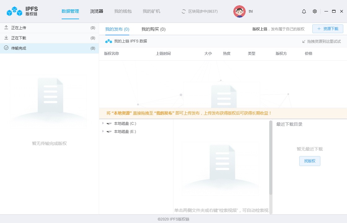 IPFS版权链是一款专门为区块链的视频版权保护而设计研发的软件,该软件内置有数据管理、浏览器、我的钱包、我的矿机四大功能操作模块,可以对版权作品进行上传和下载,并对上传下载的作品文件进行保存和管理,可以输入版权方编号或版权方地址直接跳转,从而查询版权链信息;IPFS版权链对版权IPFS版权链能够有效的保护您的原创视频版权,免受抄袭侵权的困扰,通过该软件用户可以简单便捷的进行版权信息查询,如有发现侵权行为,用户可以随时发起版权申诉,保护自己的版权利益,非常方便实用,有需要的用户可以下载进行使用。