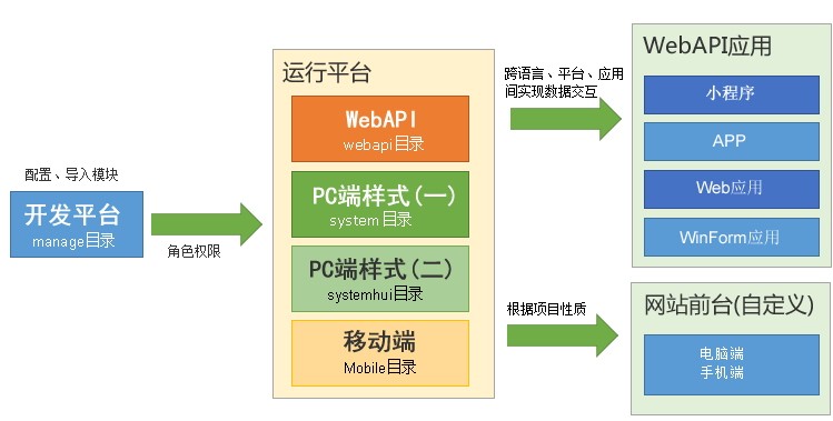 eFrameWork是一款专业优秀的网站开发框架,是基于asp.net开发的网站框架编辑软件,使用该框架可以进行网站模板导入导出,可以对模块数据结构进行修改编辑,让用户可以对网站模板的各项功能进行自定义设计,对网站的各项操作菜单进行新增或者删除;eFrameWork框架主要用于B/S架构的应用系统及网站开发,其框架设计理念是配置、导入模块、角色权限到运行平台的webapi目录,帮助用户进行跨语言、跨平台以及应用的数据交互,使用该框架用户可以根据项目性质进行网站前台自定义,可以帮助用户进行手机端和电脑端的网站前台进行编辑设计。