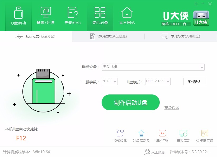 407 MB/2020-08-17U大侠一键U盘装系统工具是一款以打造快速制作万能启动U盘,一键解决系统问题的电脑重装好帮手!U大侠一键U盘装系统工具是一款以打造快速制作万能启动U盘,一键解决系统问题的电脑重装好帮手!是装系统和维护电脑不可或缺的...