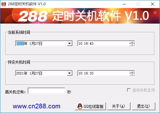 288电脑定时关机软件是一款非常简单且实用的电脑定时关机软件,通过这款软件,可帮助用户快速将电脑进行定时关机,有的时候,下班后可能忘记关电脑,常常因此感到很烦恼,这时候就可以用到这款软件,您可执行设置定时关机时间,一键即可生效,当到了指定的预设时间时,即可自动进行关机,设置时间时,可根据自己的下班时间进行设置,这样一来,以后就再也不用担心忘记关电脑了,使用起来非常方便,总而言之这是一款非常好用的软件,如果您有需要,那就赶快下载体验一下吧!