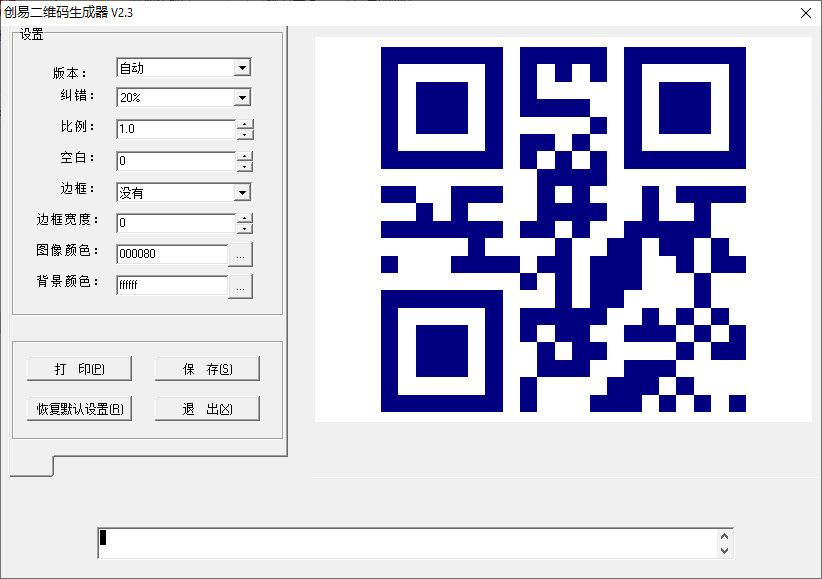 6、设置完成后在软件底部的输入框中输入相关的二维码内容,可以输入文字,网址,数字等等。