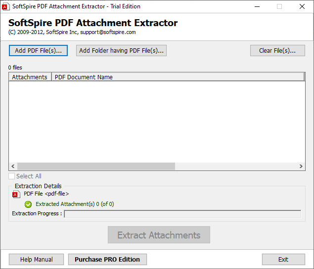 SoftSpire pdf Attachment Extractor旨在帮助用户从PDF文档中提取各种附件,包括图片,音视频和各种文档;组成PDF的元素很多,通常为了更好的展示PDF中内容,不少制作者会在PDF中添加音频,图片或者是文档等以辅助用户阅读;不过很多PDF文档由于加密设置,用户无法通过平常的方式去保存PDF文档中的各种附件;如果用户想要在受保护的PDF文档中提取附件,那么这款SoftSpire pdf Attachment Extractor可以帮助到您;它具备强大的附件提取能力,可以在几秒钟的时间内提取PDF中所有存在的附件,并且不受PDF的限制干扰,需要的朋友可以下载体验。