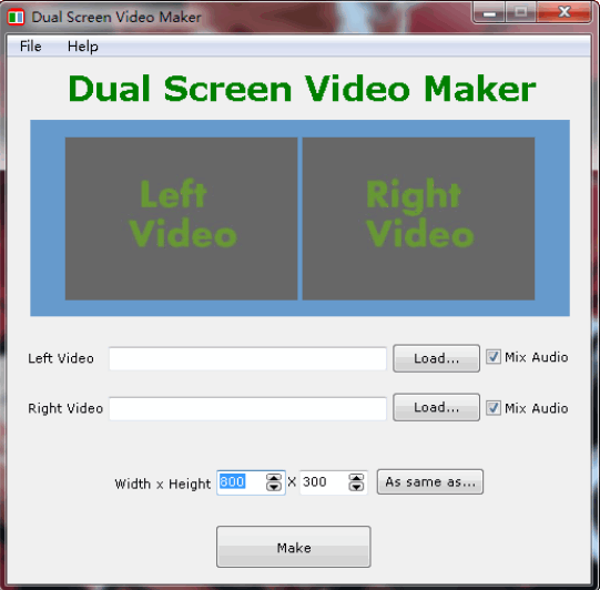 Dual Screen Video Maker是一款双屏视频制作工具,主要的作用是合并视频画面,该工具与一般的视频合并软件不一样,通常的视频合并软件是连接视频首尾来进行合并的,用户打开是一个画面,只不过是视频的播放时间变长了;而这款Dual Screen Video Maker则是在画面上对视频进行合并,通过该工具的合并用户可以在一个画面同时看到两个视频的画面,播放的视频不改变;这款工具在用户需要对视频进行比较的时候会非常有用;这款工具的使用方式很简单,适合无经验的用户使用,需要的朋友欢迎下载。
