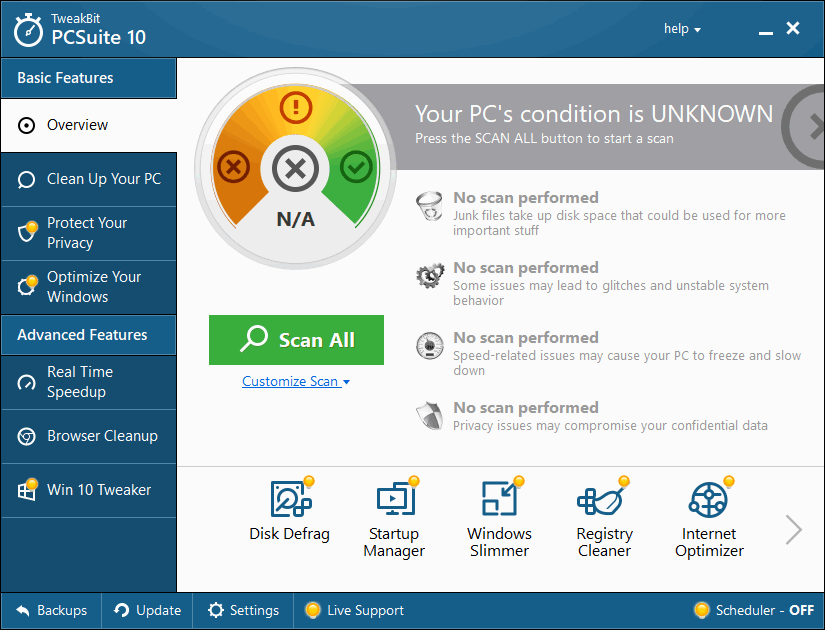 TweakBit PCSuite是一款功能强大的系统优化软件,用于清理计算机,优化系统服务进程,保护用户隐私等;当计算机使用久了之后就会出现系统运行缓慢的情况,此时想要提升系统的运行速度可以通过清理计算机内存以及优化系统启动项来实现;TweakBit PCSuite中包含了大量功能,这些功能都是围绕优化系统而设计的;同时在优化系统的时候也在另一方面帮助用户保护了个人隐私,防只恶意程序启动等等;清理没用的注册表数据以及网络缓存就可以提升您的计算机速度,需要的用户赶紧下载吧。