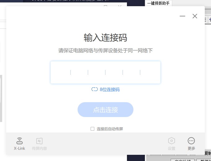 6、进入软件输入连接码设备连接界面,完成连接码连接即可进行传屏