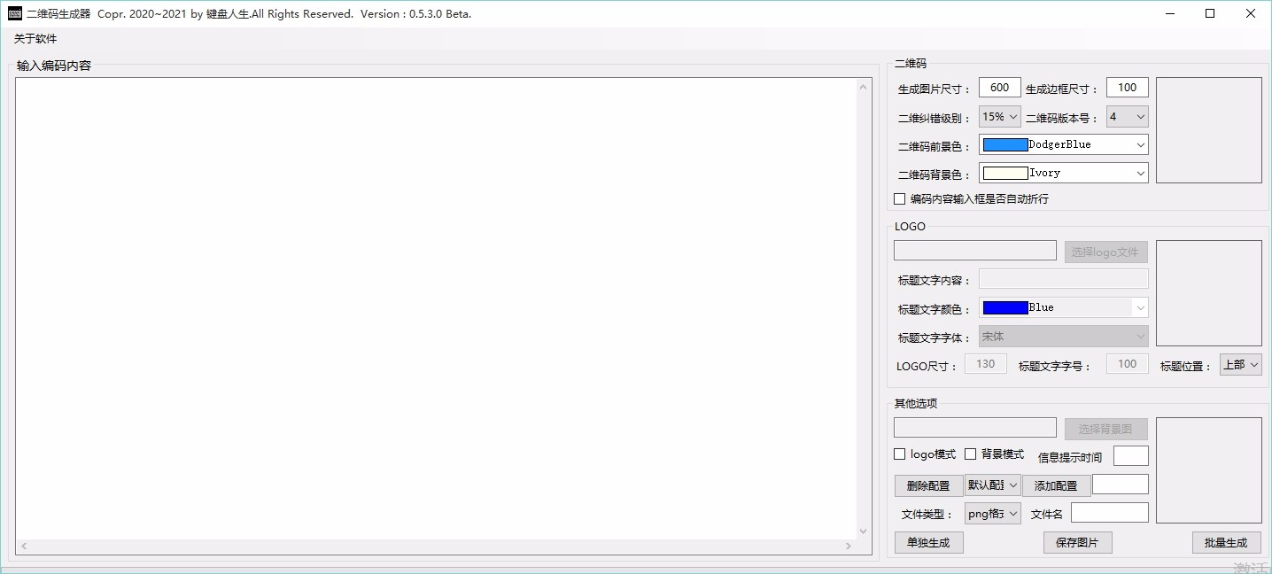 3、可对生成图片尺寸、生成边框尺寸、二维纠错级别、二维码版本号等进行设置