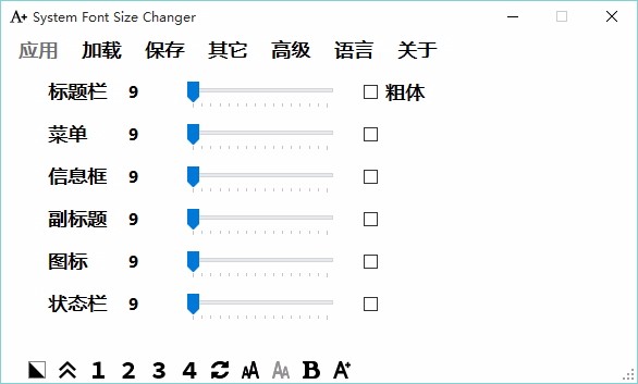 Changer是一款非常简单且实用的系统字体大小修改软件,顾名思义,通过这款软件,可帮助用户快速将系统字体大小进行修改,具备了简洁直观的操作界面,旨在为用户提供最简单的操作,使用该软件,可帮助您轻松修改标题栏、菜单、信息框、副标题、图标、状态栏等字体大小,只需一键即可快速进行修改,使用起来非常方便,修改完成后,即可保存当前字体大小设置,下次使用时,可快速加载保存的配置,总之这是一款非常好用的软件,如果您有需要,那就赶快下载体验一下吧!