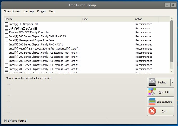 单击“全选”以选择所有驱动程序。在“反选”命令反转当前窗口的选择。这意味着以前选择的所有驱动程序现在都未选择,反之亦然。如果之前没有选择,该命令将选择整个驱动程序。