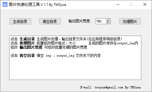 图片快速处理工具是一款可以批量处理图像宽度的软件,这款工具对于用户上传和分享图片十分有帮助;如果将大小不一的图片上传到网站中,那很可能会出现图像排列混乱或分辨率不统一的情况出现,这种情况会给其他人带来不好的浏览体验,因此上传图像最好的办法是将图像先处理为统一大小再上传;这款图片快速处理工具具备批量处理图像的能力,用户可以自由设置图像宽度,然后将需要处理的图像移动到软件生成的输入文件夹中,只需一键即可批量压缩图像,非常简单,需要的小伙伴欢迎下载使用。