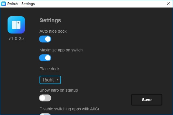 Switch为您提供了一个扩展坞,您可以在其中将应用程序分配给预定义的快捷键。提供了十个热点空间,您可以在其中放置可通过热键切换的应用程序。