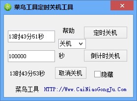 菜鸟定时关机重启工具是一款非常简单且实用的电脑定时关机重启软件,顾名思义通过这款软件可帮助用户快速将电脑定时进行关机或重启操作,软件体积小巧所占内存也很小但是功能却很实用,有的时候可能需要暂时离开电脑但是又希望电脑继续执行下载任务,这时候就可以用到这款软件,可根据电脑下载完任务时间设置定时关机时间,在任务下载完成后即可自动进行关机,使用起来非常方便,同时支持倒计时关机自动显示倒计时关机时间,也对经常忘记关电脑的用户来说非常有帮助,喜欢的话就赶快下载吧!