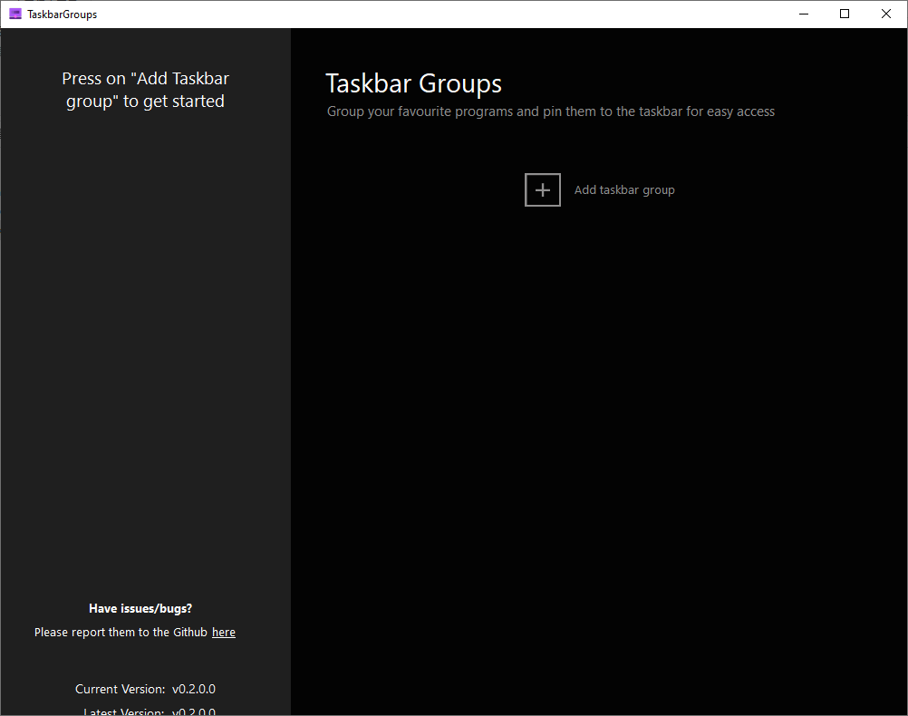 2、进入软件后点击“Add taskbar group”按钮以创建新的项目。