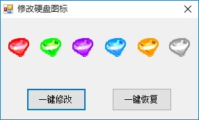 修改硬盘图标工具是一款非常简单且实用的硬盘图标修改软件,顾名思义通过这款软件可帮助用户快速将硬盘图标进行修改,如果您厌烦了系统内置的硬盘图标想要将硬盘图标进行修改的话就可以用到这款软件,软件体积小巧所占内存也很小但是功能却很实用且对应的操作也非常简单,只需轻轻点击鼠标一键即可修改硬盘图标使用起来非常方便,如果您要想将其进行恢复也可一键恢复到最初的硬盘图标,使用该软件可帮助您让硬盘图标焕然一新,这么好用的软件赶快下载试试吧!