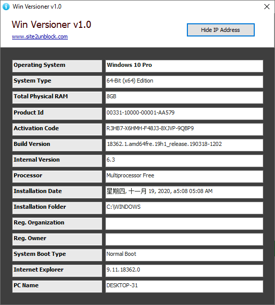 Win Versioner是一款计算机系统信息查看软件,您可以通过它查看计算机系统的多项信息,包括系统版本,激活码和安装日期等等;当用户对计算机进行维护的时候,首先要了解计算机的系统信息,比如系统的版本,系统的架构和安装路径等,您只有了解系统信息才能去找合适的工具来维护计算机;一般情况下用户是可以直接通过计算机浏览系统版本信息的,不过计算机能够显示出来的信息比较少,如果您想要查看更多更详细的计算系统信息,那么这款工具将会帮助到您。