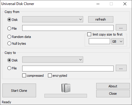 Universal Disk Cloner是一款磁盘数据克隆软件,可帮助用户快速复制外部磁盘数据和本地文件数据到任意位置中;这款工具在您需要备份系统数据或者在更换电脑时是非常有用的,您可以通过它轻松将就计算机上所有的软件和数据都克隆到另一台计算机中,从而为您节省重新安装必备软件所需的时间;这款工具很轻小,同时也十分简单,对于大部分用户而言,这款软件确实没有任何操作难度;Universal Disk Cloner具备简洁清晰和快速备份数据的特点,需要的朋友赶紧下载体验吧。