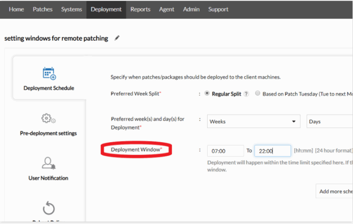 我们可以使用“部署策略”来控制我们部署最新可用补丁的日期和时间。扫描过程是自动进行的时,您可以根据最适合您的网络环境的要求设置部署策略。