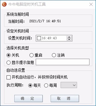 牛牛电脑定时关机工具是一款非常简单且实用的电脑定时关机软件,顾名思义通过这款软件可帮助用户快速将电脑自动进行关机,具备简洁直观的操作界面旨在为用户提供最简单的操作只需设置关机时间和执行周期一键即可执行定时关机任务,为了让您更加方便的设置定时关机时间软件界面显示了系统当前的具体时间且该时间准确并精确到秒,有了这款这款软件可帮助您让电脑自动进行关机,以后就再也不用担心忘记关电脑了可有效节省电力资源,如果您需要这款软件的话就赶快下载体验一下吧!