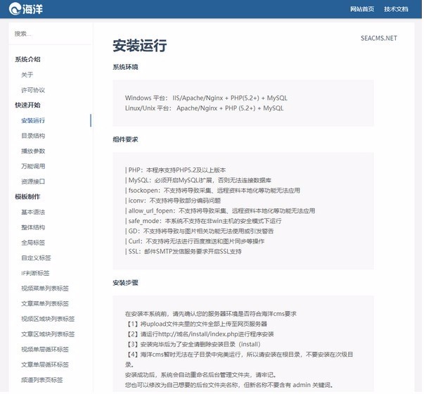 海洋CMS支持多操作系统(Win/Mac/Linux)在PHP(5.x/7.x)+MySQL环境下可以快速键安装部署。