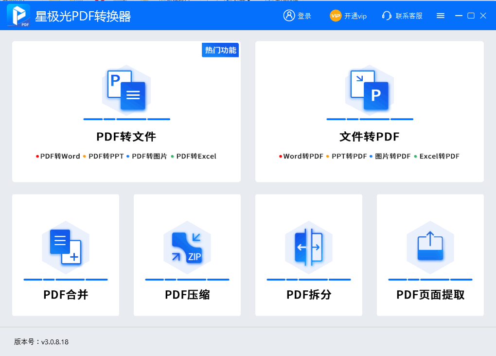 星极光PDF转换器是一款功能全面的PDF转换软件,它可以帮助用户将PDF转换成其它文档,也可以将其它文档转换成PDF,同时还支持PDF合并,压缩,提取以及拆分等;这款工具采用简洁直观的界面界面,所有功能布局一目了然,操作步骤也非常简洁,大部分功能都可以实现一键处理,节省用户时间;星极光PDF转换器可以为用户提供免费试用,试用会有处理页数的限制,如果想要一次性处理全部文档则可以开通VIP使用;这款工具具备很高的性价比,支付一份费用,享受六大功能,这比其它一些将功能拆分出来单独收费的软件要好很多。