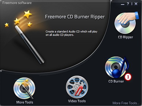 启动Freemore CD Burner Ripper。将空白CD插入CD驱动器,然后单击“ CD Burner”(1)以运行音频刻录器向导。