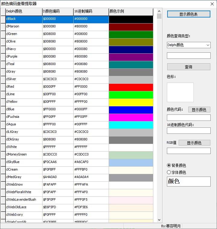 1、直观的显示颜色表,用户可以通过颜色表查看颜色的详细信息。