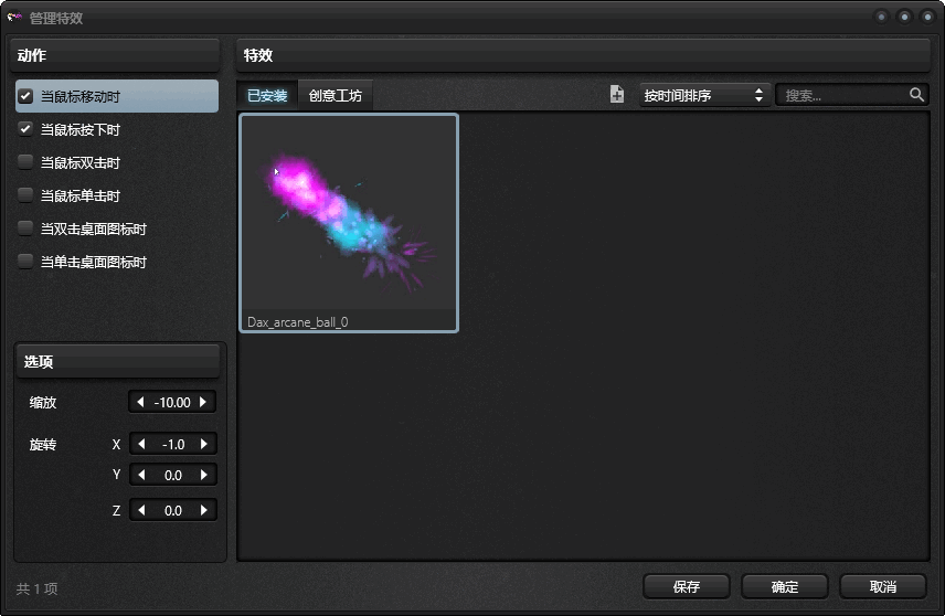 3、支持多种定制选项,大部分特效可以任意缩放和3D旋转。