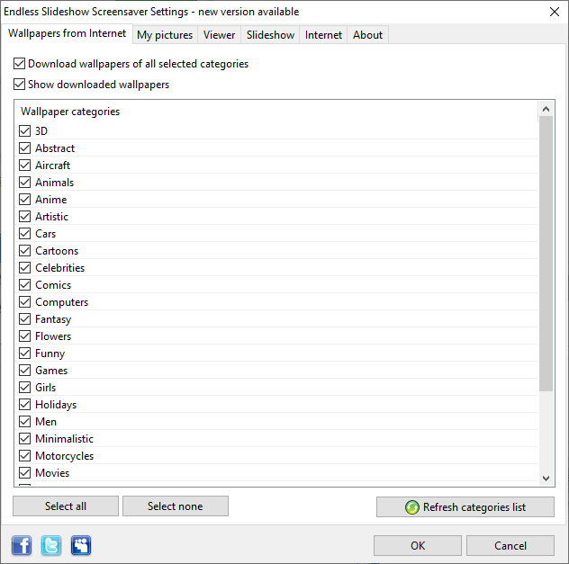 Endless Slideshow Screensaver是一款强大的屏幕保护程序,用户可以使用这款软件制做幻灯片,并将制作好的幻灯片应用到屏幕保护中;软件拥有丰富的过渡效果,您可以使用这些过渡效果让图片在切换过程更加平滑流畅,您还可以自定义设置幻灯片的切换时间和过渡时间;软件预置了自然,动物,动漫,汽车等等类型的壁纸图片,这些壁纸都可以用来设置为屏幕保护壁纸,还可以一键将这些图片设置为桌面壁纸;总之Endless Slideshow Screensaver是一个很强大的屏幕保护设置工具,感兴趣的朋友欢迎下载体验。