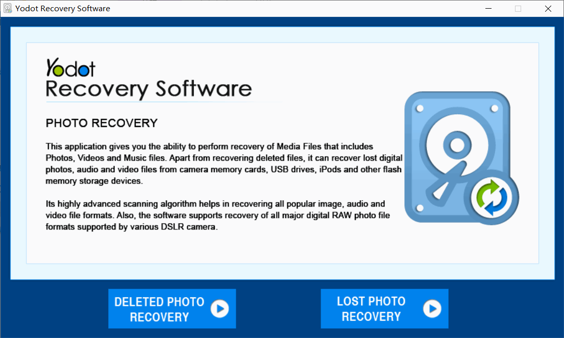步骤1:下载并安装Yodot Photo Recovery软件的免费试用版。