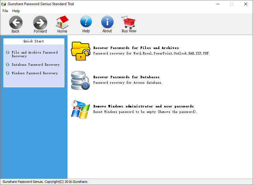 iSunshare Password Genius是一款比较全能的密码恢复软件,可以恢复文件密码,磁盘密码以及计算机系统密码,轻松满足用户对各种密码的恢复需求;软件可以恢复的文件类型达到七十多种,用来恢复常用文件密码不在话下;很多重要文件我们都会设置一个保护密码,由于设置的密码比较多,就很容易将这些密码忘记;每次忘记就需要下载对应文件的解密工具,不知不觉中,在电脑上就安装了很多解密工具,非常占用计算机内存;而使用这款iSunshare Password Genius,一款软件就可以完成大部分文件的密码恢复任务,它还支持磁盘和系统的密码恢复,可以说是非常强大了,需要的朋友赶紧下载使用吧。