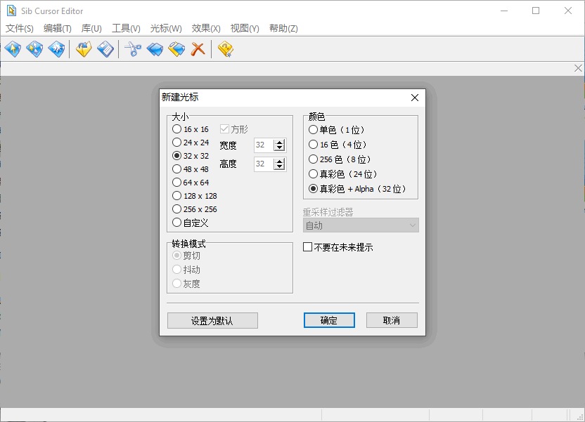 2、使用8位alpha通道为Windows XP/7/8创建32位色深的游标并对其进行编辑。