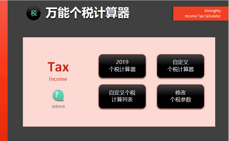 1、解压程序后双击程序,万能个税计算器会在Excel中打开,界面如下所示。
