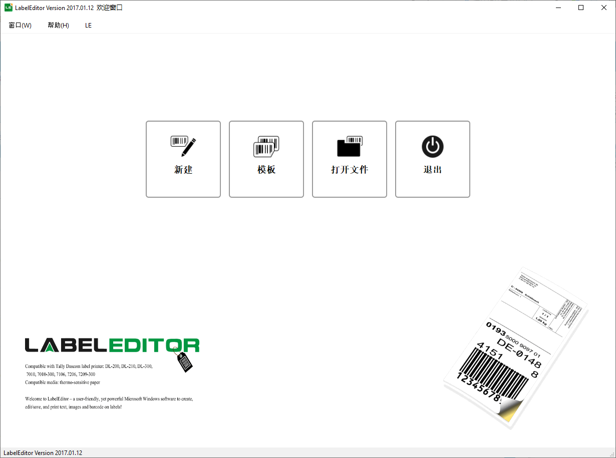 LabelEditor Version是得实推出的一款标签打印软件,可以与得实旗下的打印设备配合使用,帮助用户以一种高效快速的方式创建标签和打印标签;该软件具备强大的标签制作功能,它为用户提供了很多常用标签模板和标签元素,用户使用这些模板可以很轻松的创建新标签;LabelEditor Version采用全中文界面设计,这降低了国内用户的操作难度,同时它也支持其它语言界面,用户可以在软件的设置窗口中进行切换;该工具可以实现对文字标签,图片标签,条码标签的创建和打印,非常强大;需要的朋友赶紧下载体验吧。
