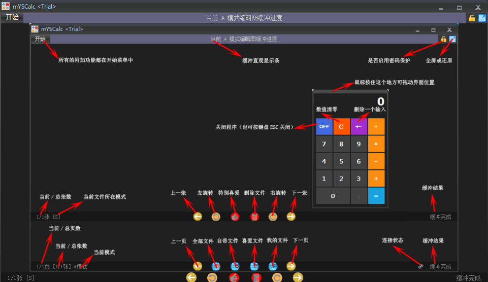 1、在锁定状态下,其只是一个有着普通计算器功能界面的软件。当进行身份确认后,就是一个强大的文件保存和浏览软件。