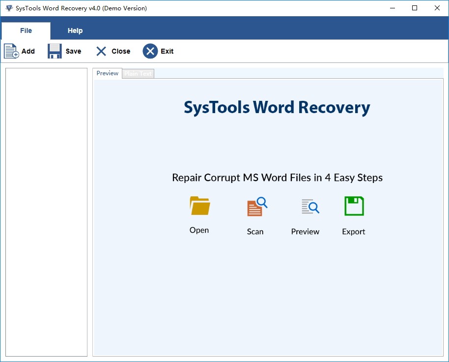 SysTools Word Recovery是一款功能强大、专业实用的Word文档修复软件,使用这款软件用户可以修复各种版本的Word文件文档,用户只需将Word文件添加到软件上即可直接进行文档修复,非常简单方便,同时该软件还支持一键批量添加Word文件,可以对多个文件进行一键修复;SysTools Word Recovery这款Word文件界面简洁直观、操作简单便捷,可帮助用户修复损坏的word文件和恢复具有完整格式的Word文件,并能多页保留富文本丰富的布局,十分方便实用,有需要的朋友可以自行下载。