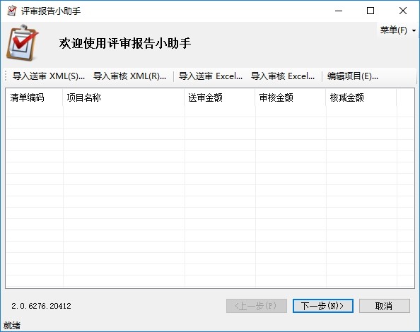 评审报告小助手是一款体积轻量、简单易用的报告评审辅助软件,内置导入送审XML、导入审核XML、导入送审Excel、导入审核Excel、编辑项目等多种功能,可将导入软件的各项数据文件进行整理和统计分析,使用这款软件用户可以快速高效、完美精准的进行输入导入,方便用户对项目的管理和审批;评审报告小助手体积小巧、占用系统空间不大,拥有简洁友好的操作界面,可帮助用户高效便捷的进行审批报告管理,提高用户报告审批的工作效率,非常方便实用,有需要的用户可以自行下载。