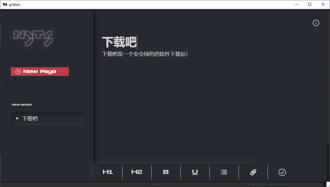 goNots是一款简洁的离线笔记软件,用户可以使用这款软件记录任何事情;这款工具的功能比较简单,由于不支持联网,因此用户使用这款工具记录笔记会更加的安全;很多用户都有记录文字的习惯,也使用过不少的笔记软件,虽然大部分的笔记软件功能比较丰富,但实用的功能却不多,相反会让用户在记录笔记的时候不知所措;还有一些软件存在信息泄露的风险,这对用户而言是很可怕的事;这款goNots采用极为简洁的设计风格,仅提供文字记录和简单的排版功能,不联网,可以自动保存文字,很适合那些喜欢单纯记录文字的用户使用。