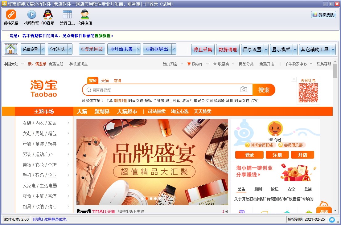 3、进入淘宝链接采集界面可以浏览众多精品淘宝宝贝